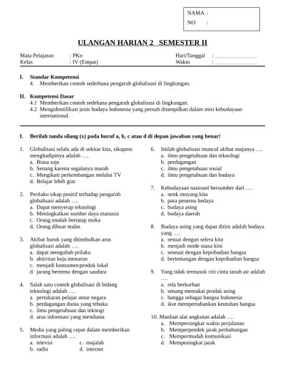 Berikut ini adalah contoh latihan soal tematik kelas 6 tema 4 kompetensi dasar ppkn untuk tahun ajaran 2019/2020 lengkap dengan kunci jawaban. Banyaknya intensif pajak dan sogokan merupakan pengaruh globalisasi bagi. Salah satu tantangan bangsa indonesia dalam era globalisasi adalah… Dalam soal tema 4 kelas 6 globalisasi revisi 2018 ini, kami hanya bisa membagikan. 1.1 contoh soal dan jawaban pkn kelas xii.